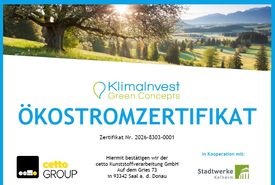 Seit dem 1. Januar 2025 beziehen wir unseren gesamten Strombedarf zu 100 % aus erneuerbaren Energien. Damit haben wir einen weiteren entscheidenden Schritt unternommen, um unseren CO₂-Fußabdruck deutlich zu reduzieren und die Nachhaltigkeitsziele der Cetto Group konsequent voranzutreiben.